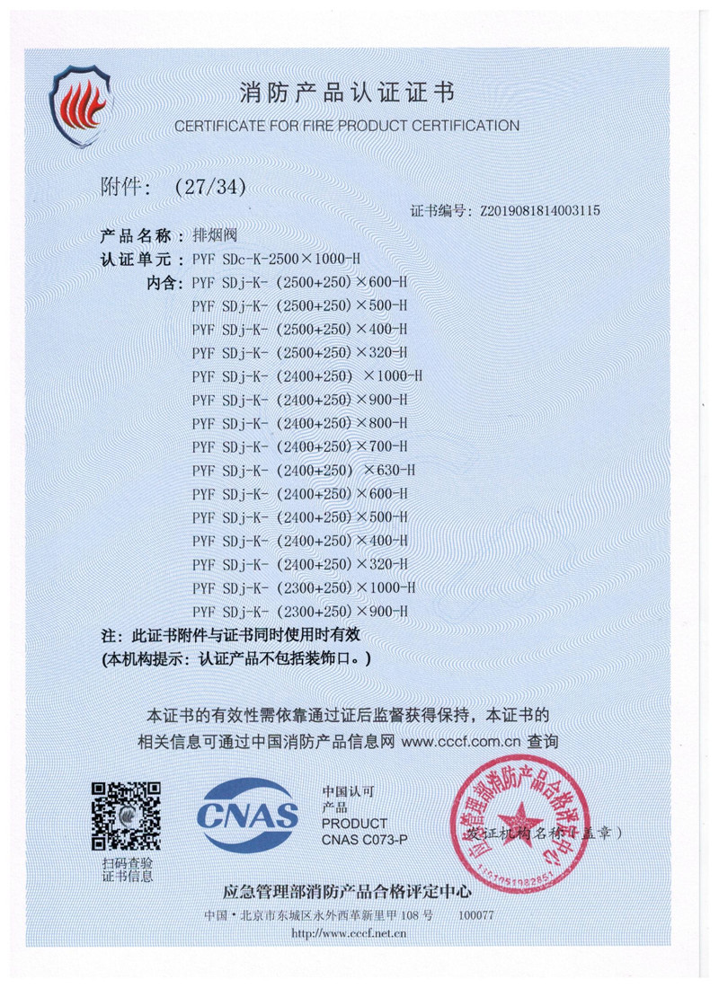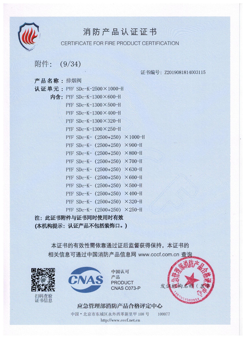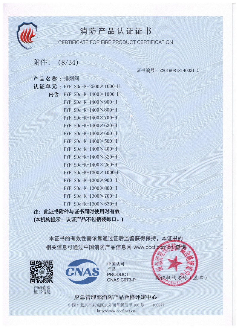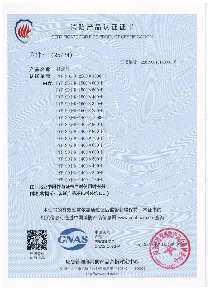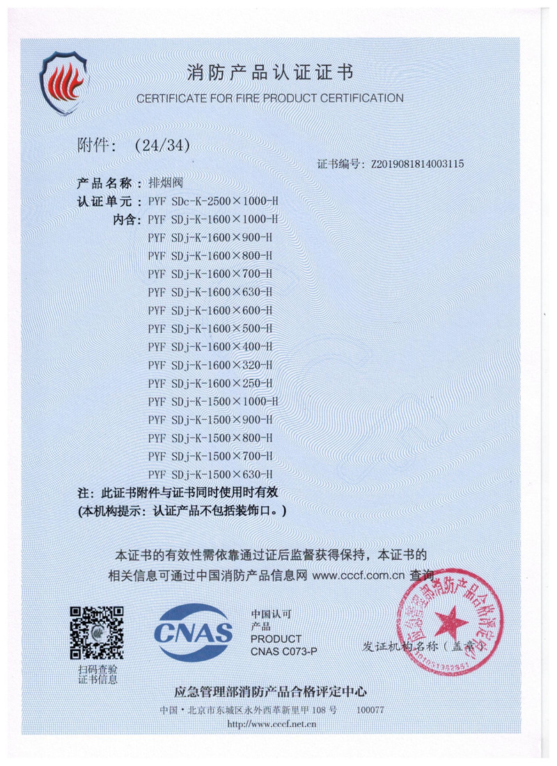 排煙防火閥證書