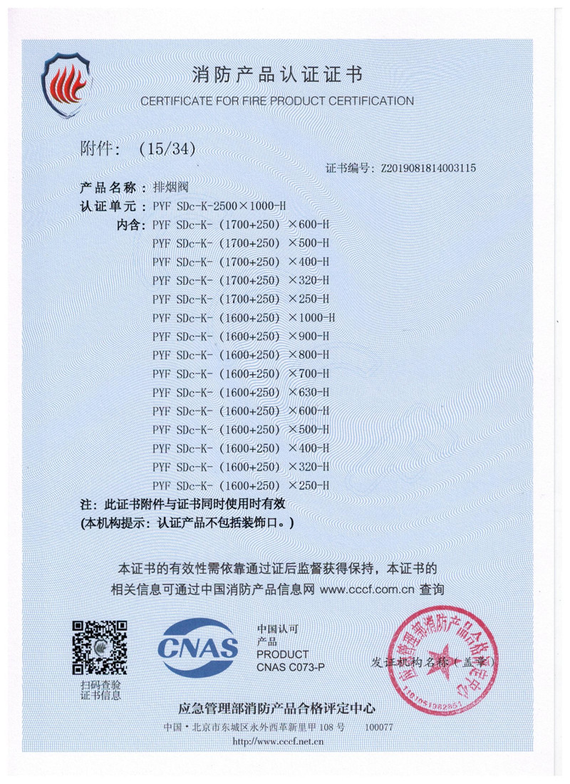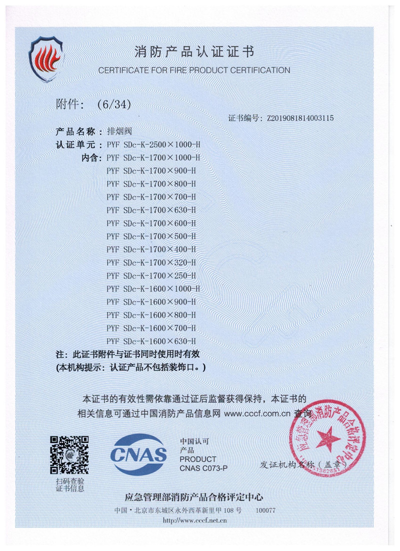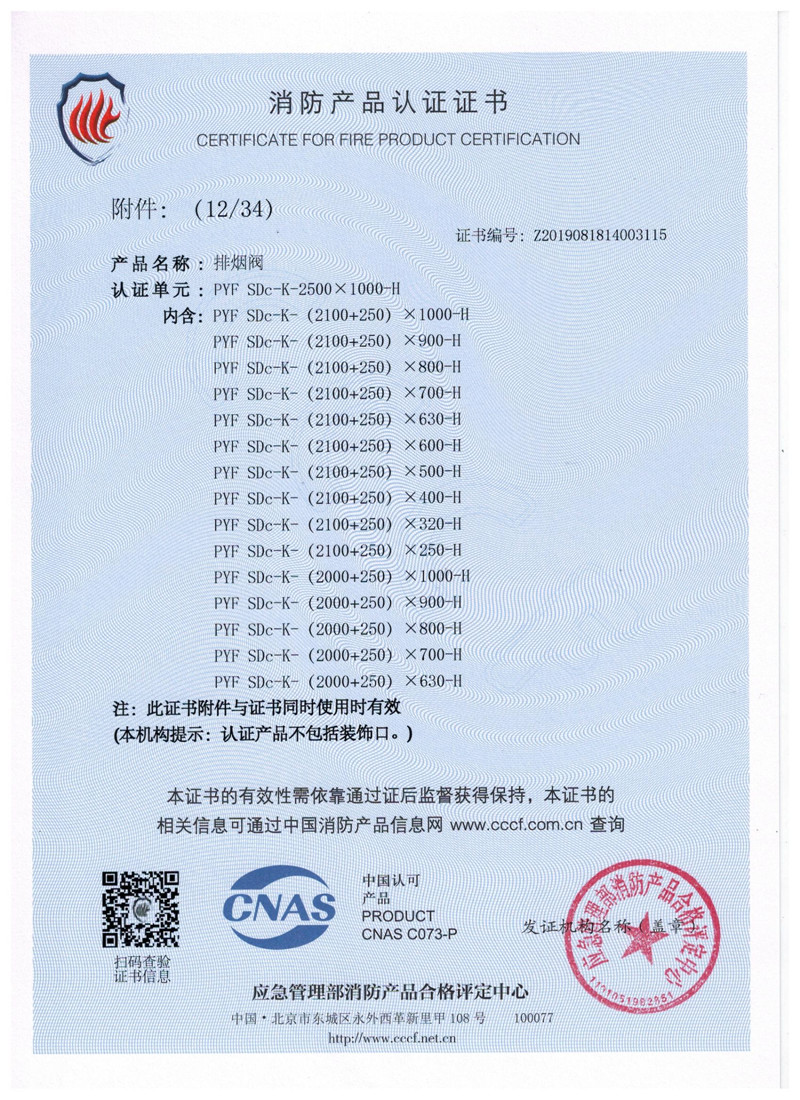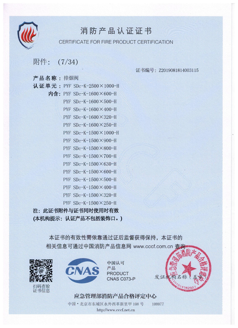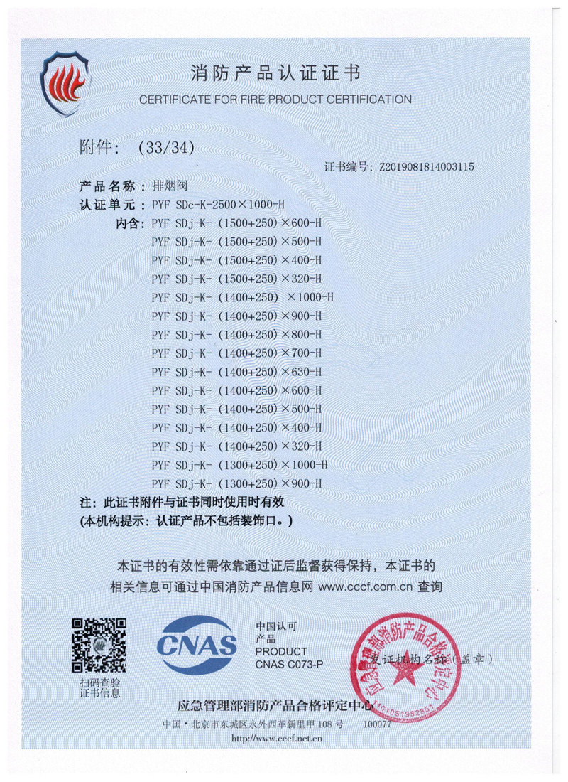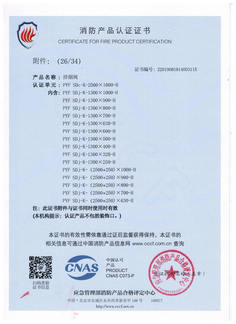 排煙防火閥證書