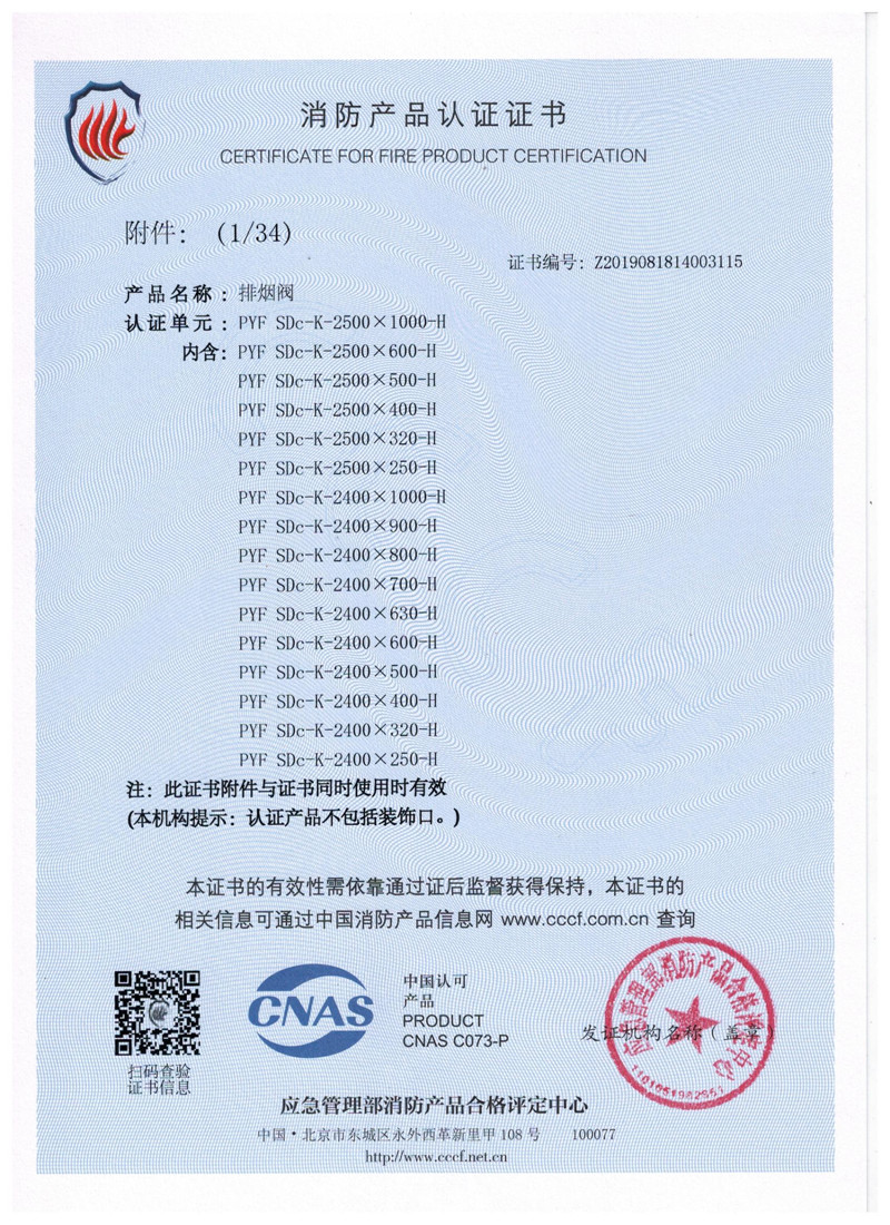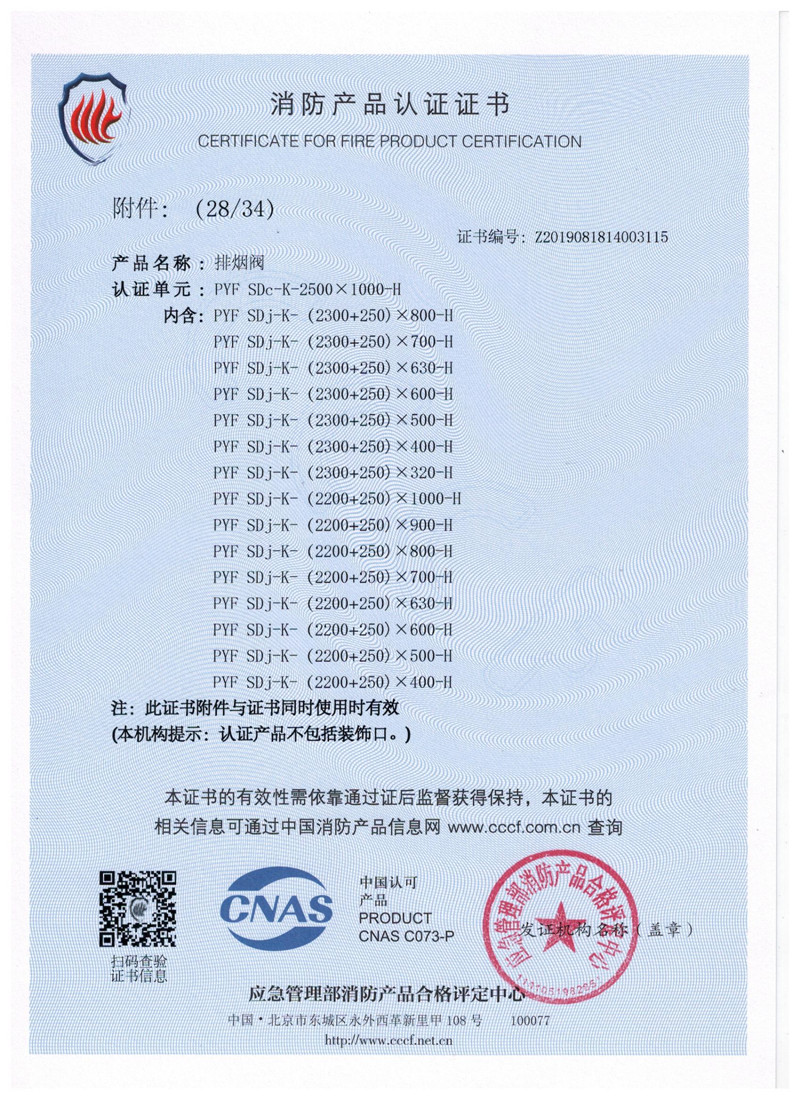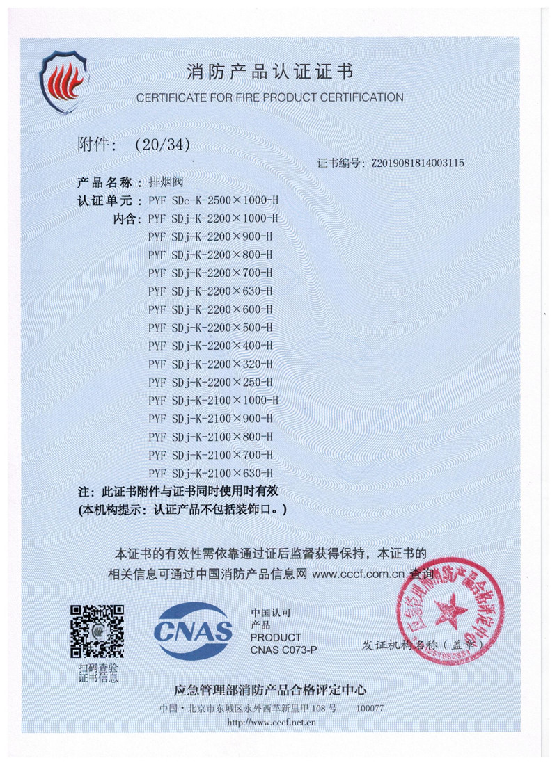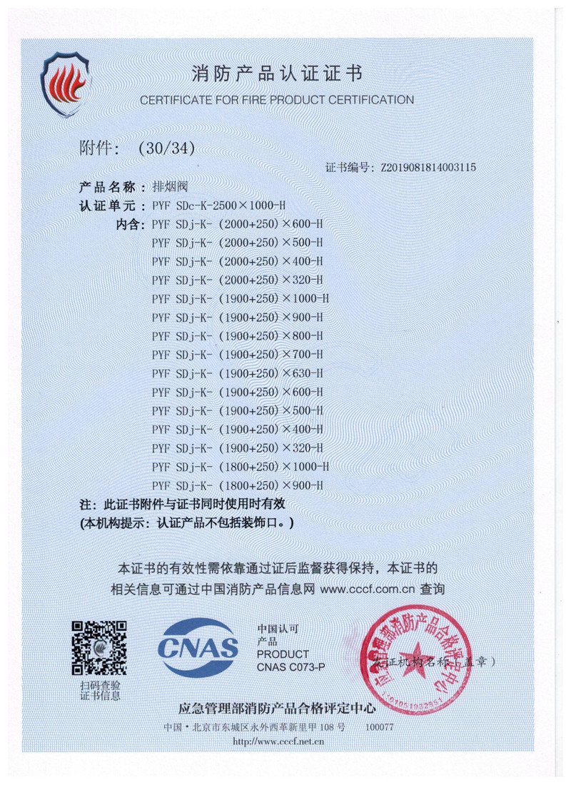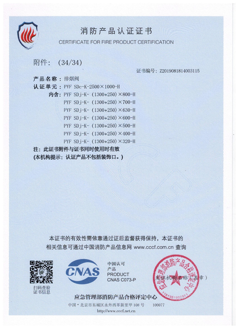 排煙防火閥證書