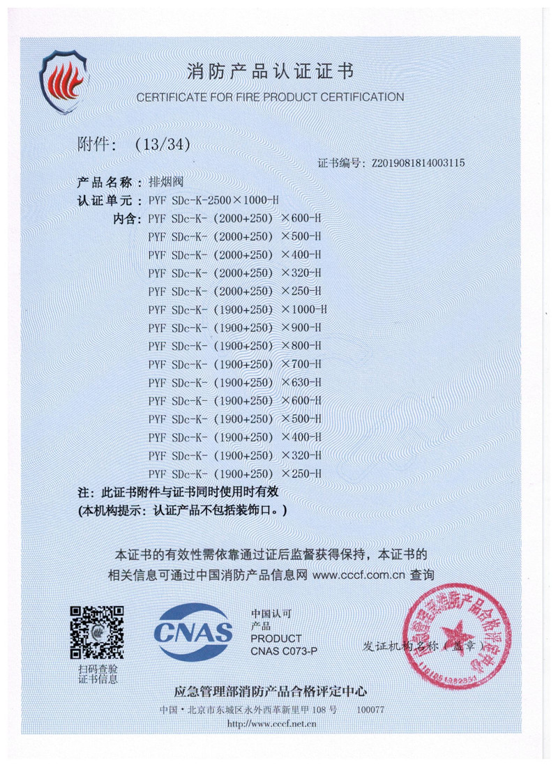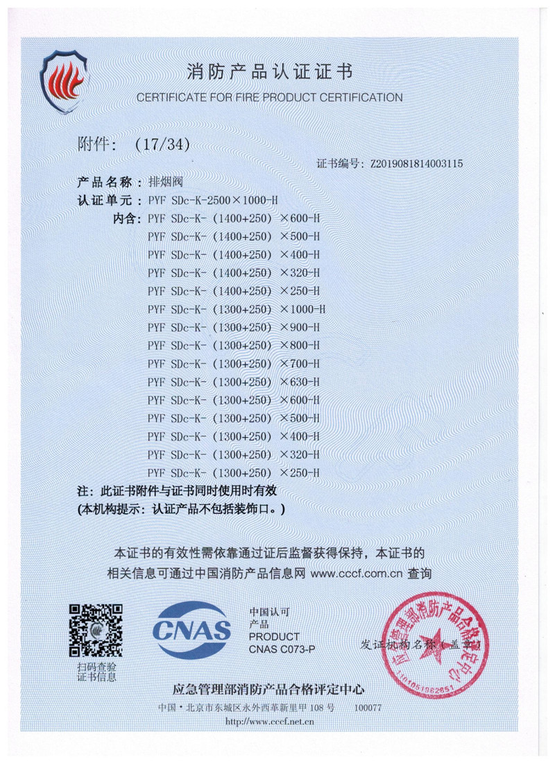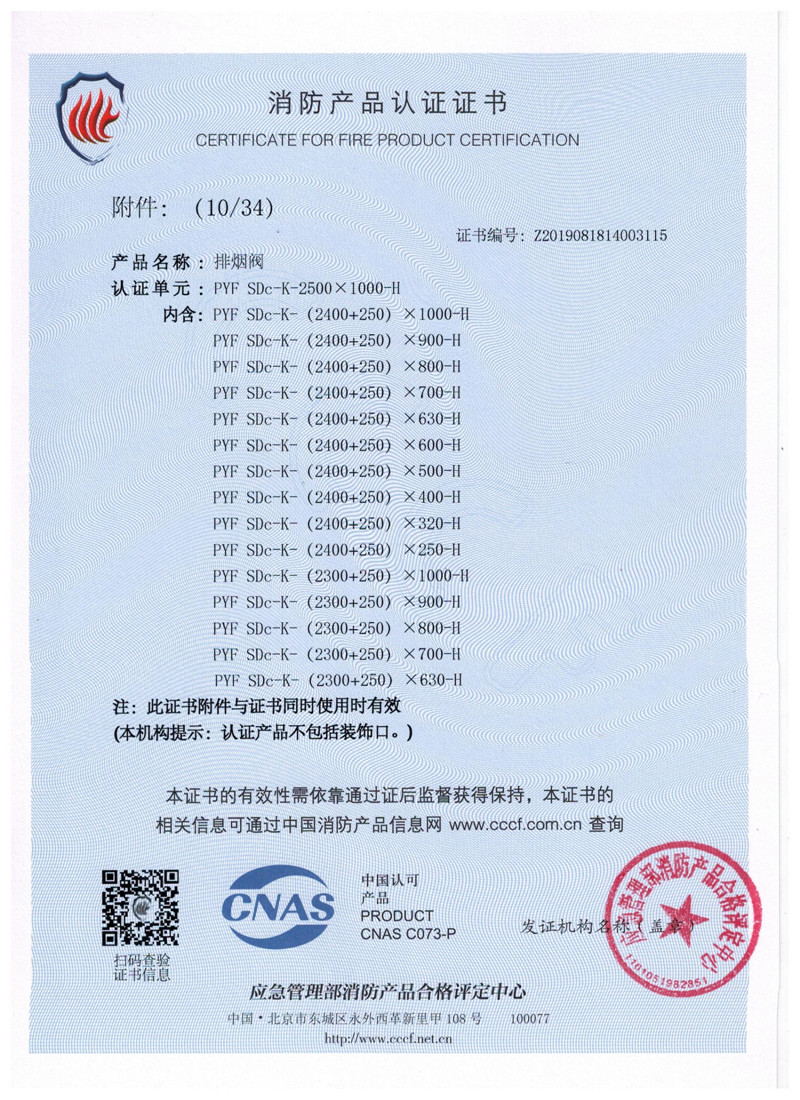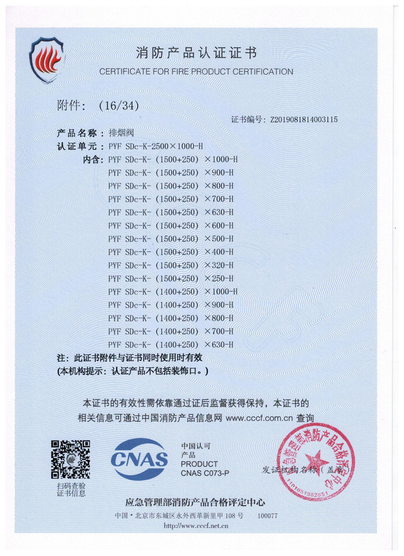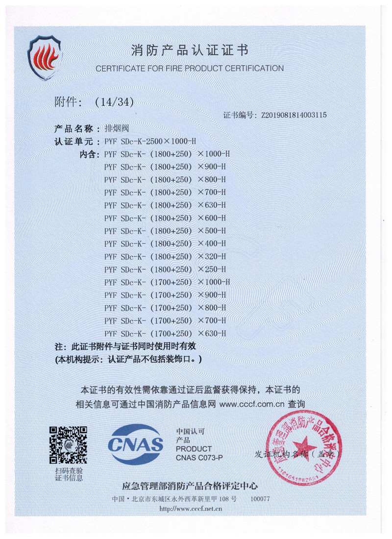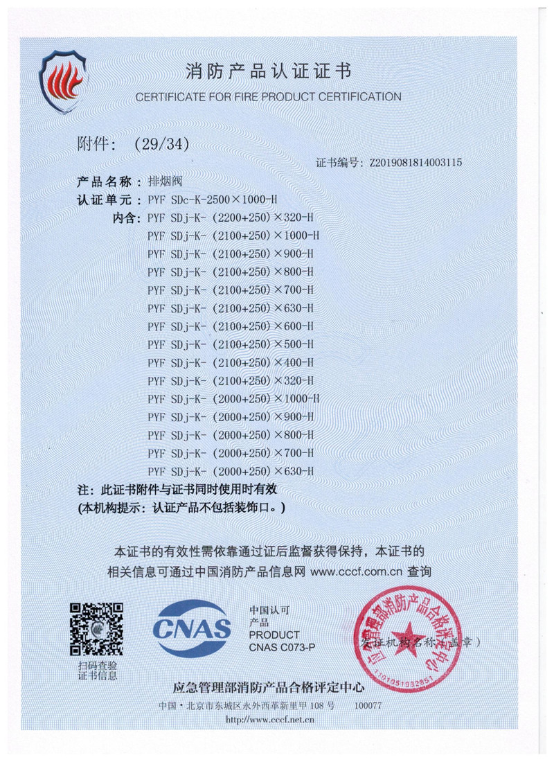 排煙防火閥證書