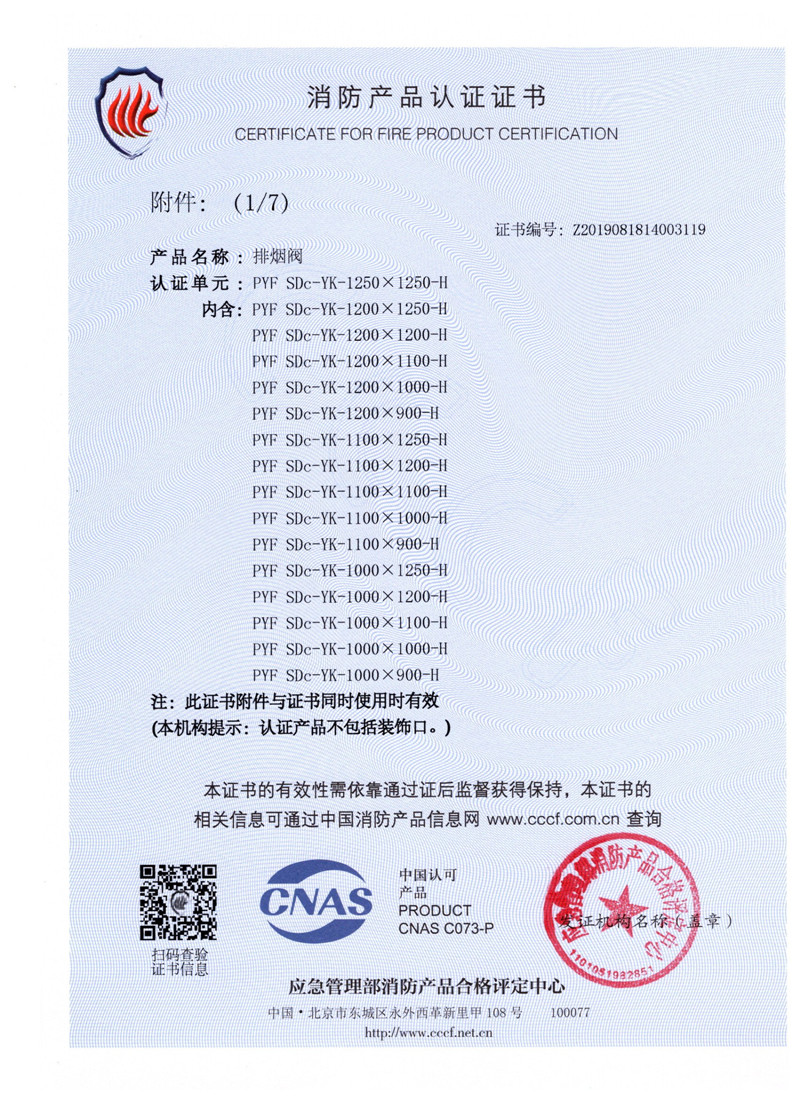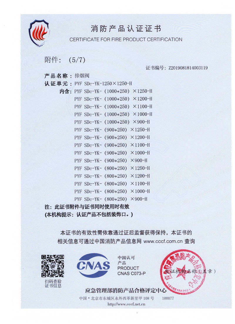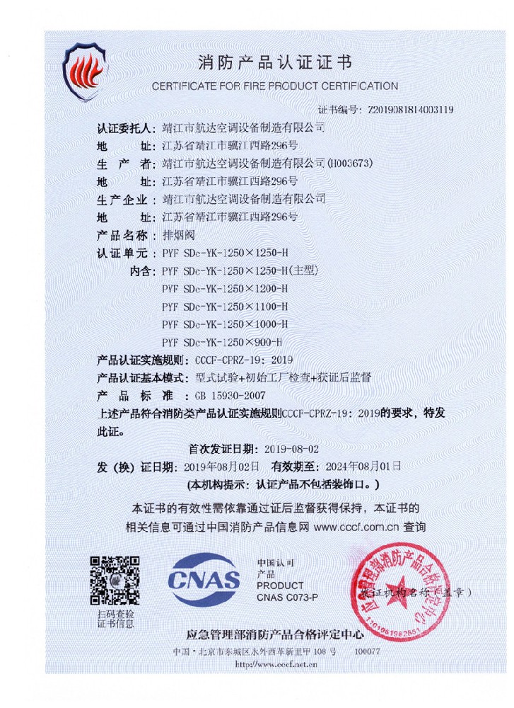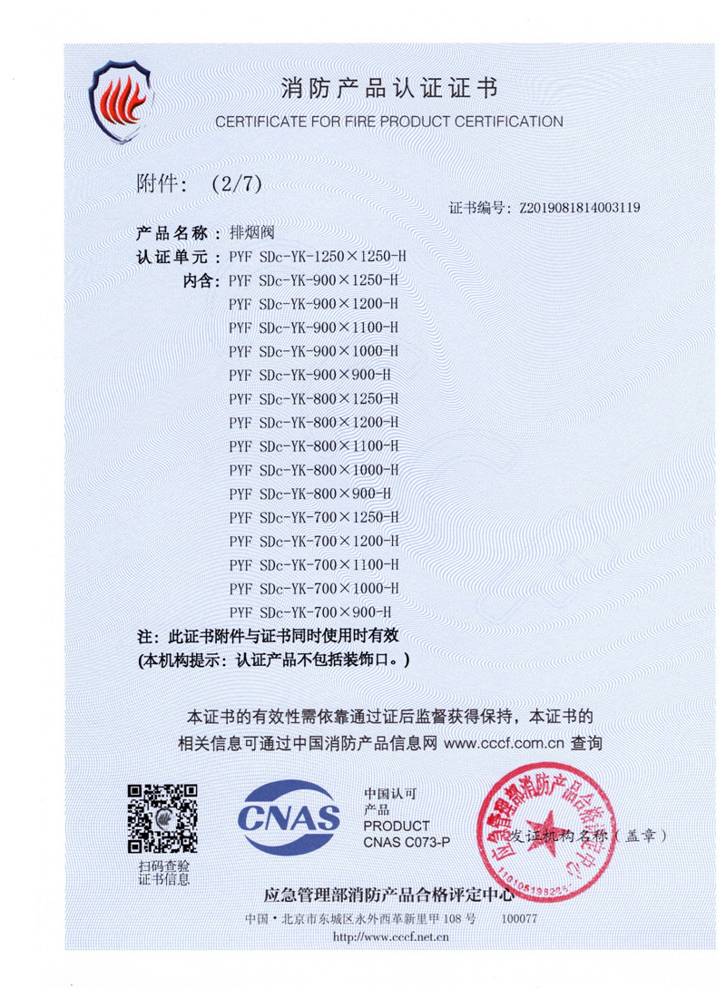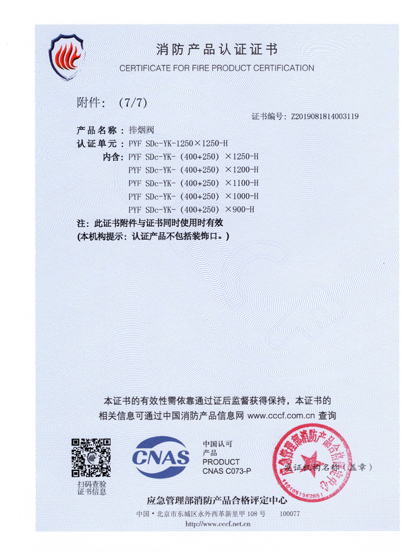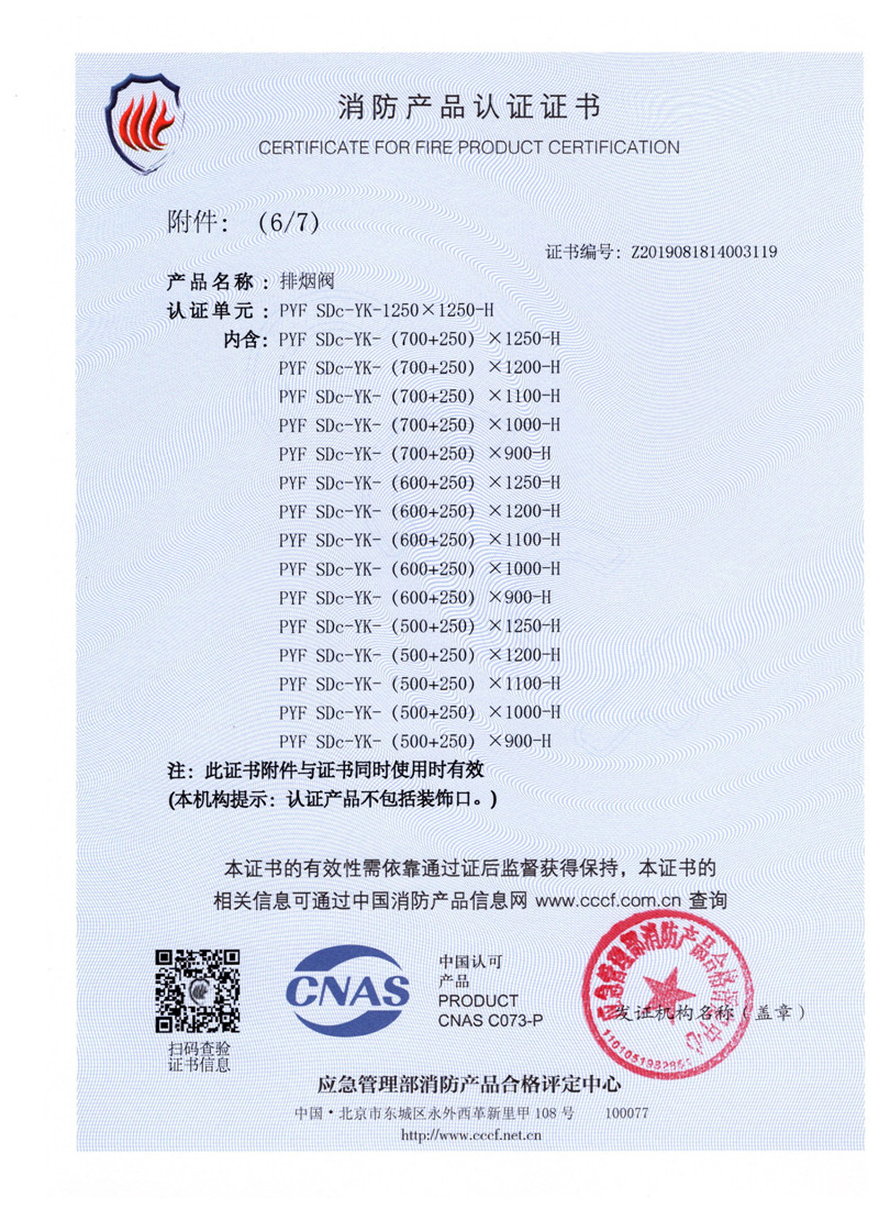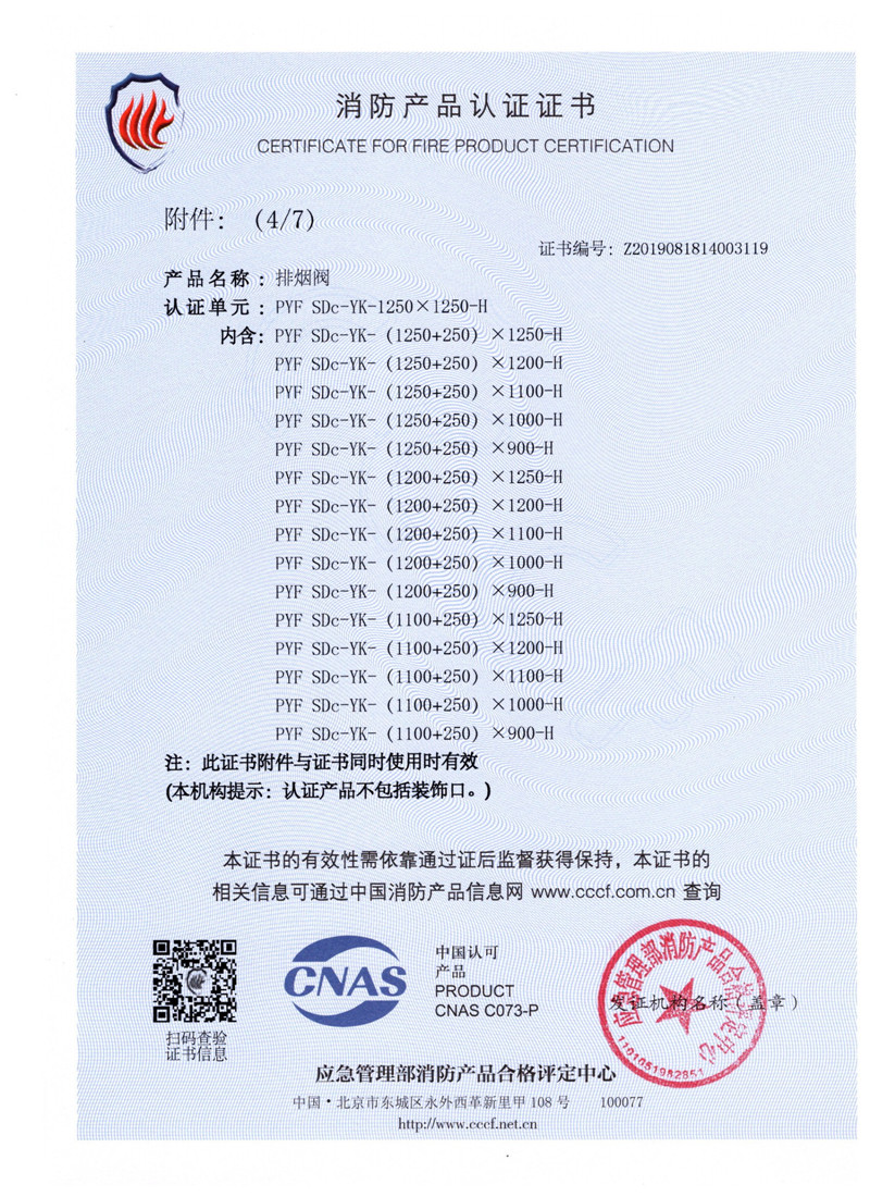 排煙防火閥證書